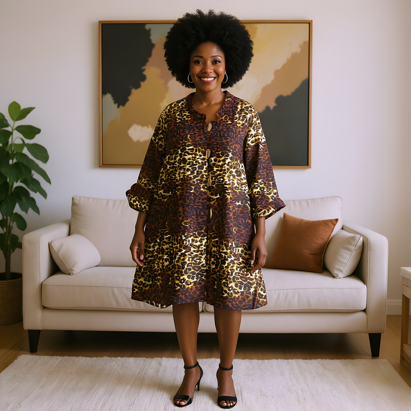Authentic Animal Print Big Button Tunic Short Dress Blouse Top