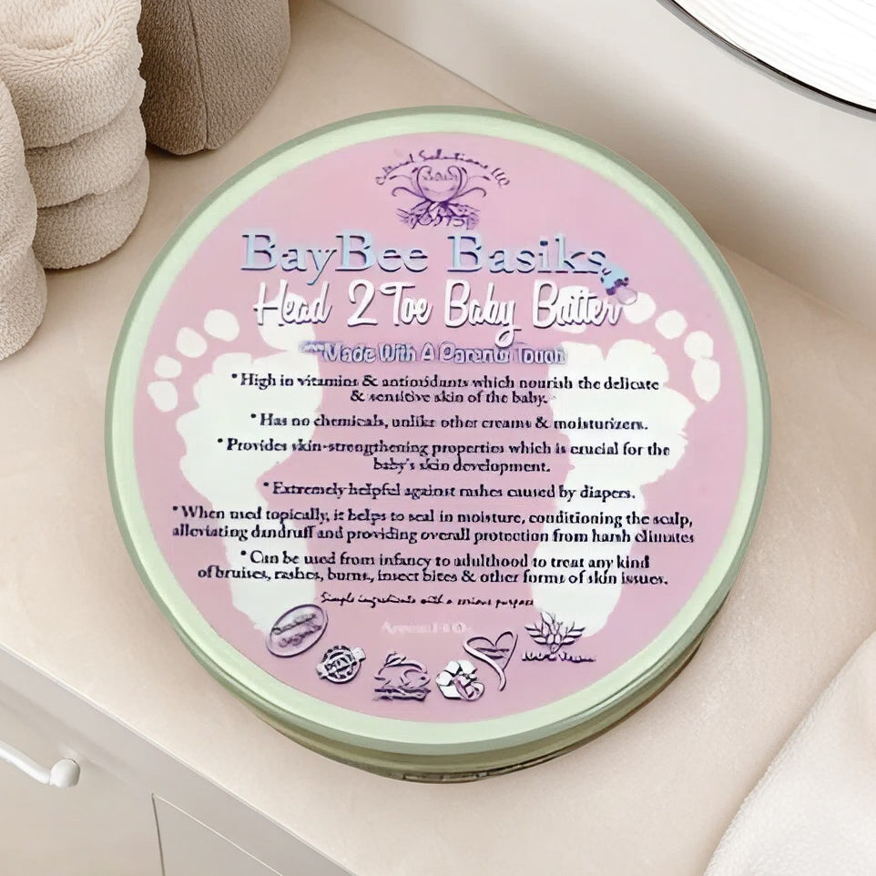 Pamper your baby’s delicate skin with BayBee Basiks Head 2 Toe Baby Butter. Made with a gentle touch, this nourishing formula is rich in vitamins and antioxidants, free of harsh chemicals, and perfect for sensitive skin. It helps treat diaper rashes, seal in moisture, and protect against harsh weather. Suitable from infancy to adulthood for soothing bruises, burns, rashes, and more.