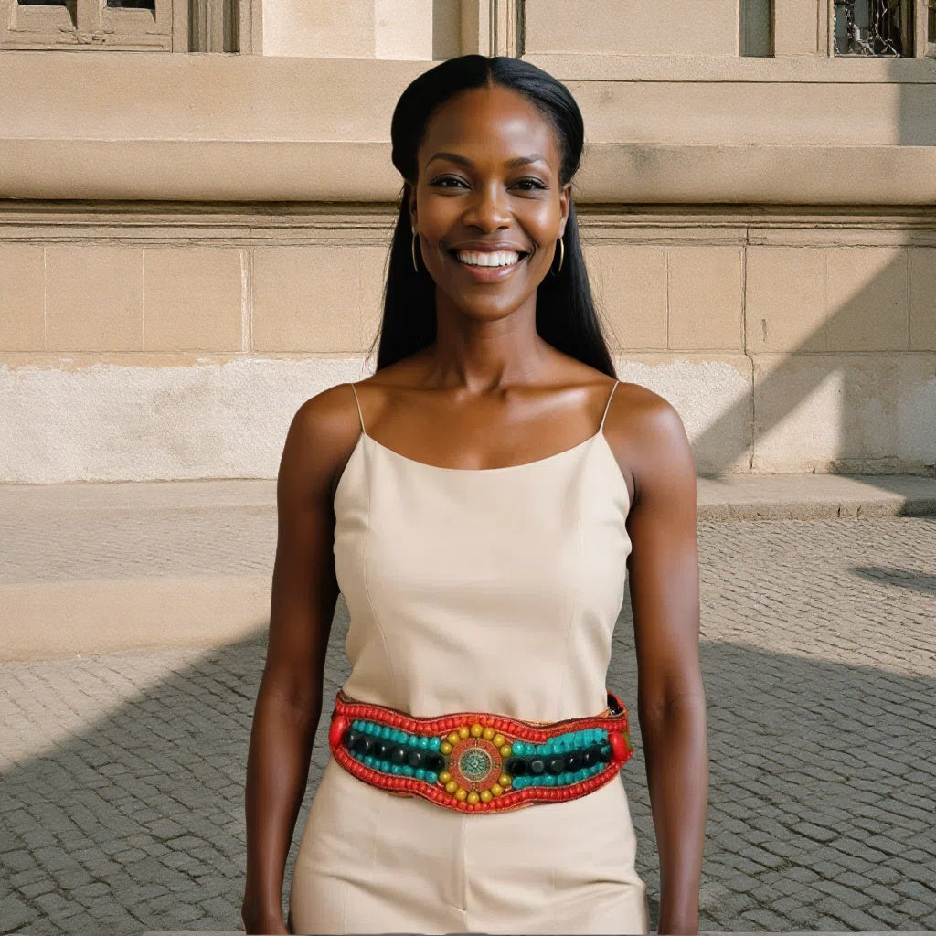 This belt combines heritage and style, adding a bold, authentic African touch to any outfit. It can be worn with dresses, skirts, or pants, making it a versatile accessory for both casual and formal occasions. Whether for cultural celebrations, festivals, or everyday fashion, this belt is a standout piece that embraces African artistry and craftsmanship.