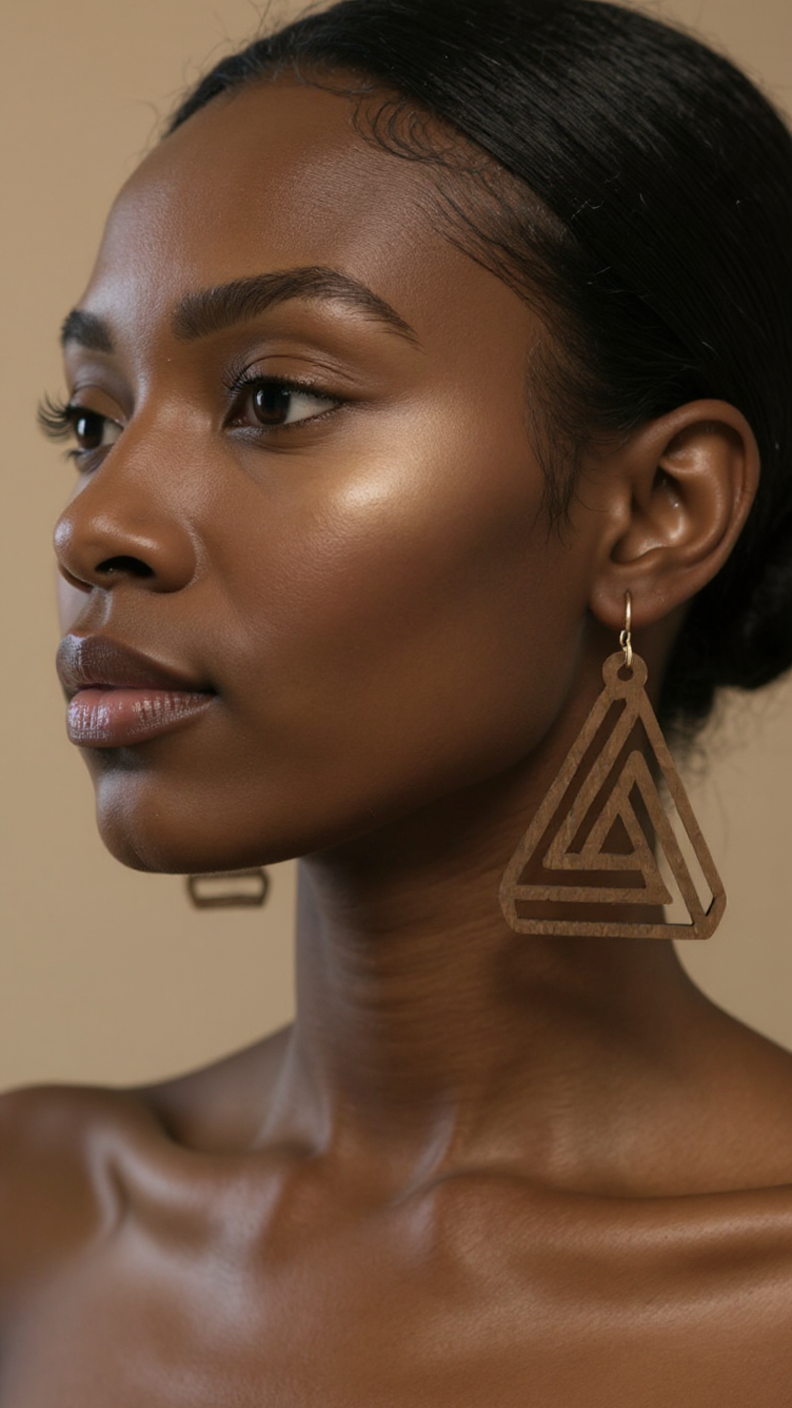 Triangle Shape Wooden Hoop Earrings