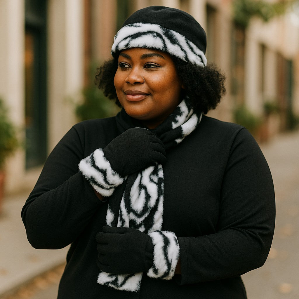 This set is perfect for any winter occasion. Whether you're heading out for a night on the town or just running errands, you'll look great and stay warm. Get the Faux Fur Trim Fleece Scarf, Hat, & Gloves 3pc Set from My African Fashions and stay stylish all winter long.