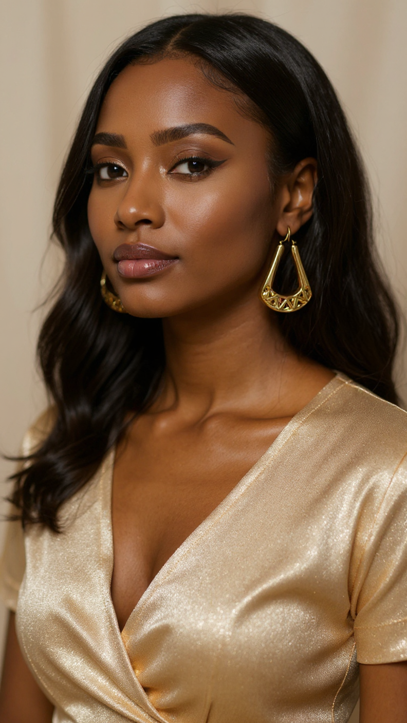 African gold jewelry set, African geometric earrings, African pendant necklace, African fashion jewelry, African accessories, African statement set