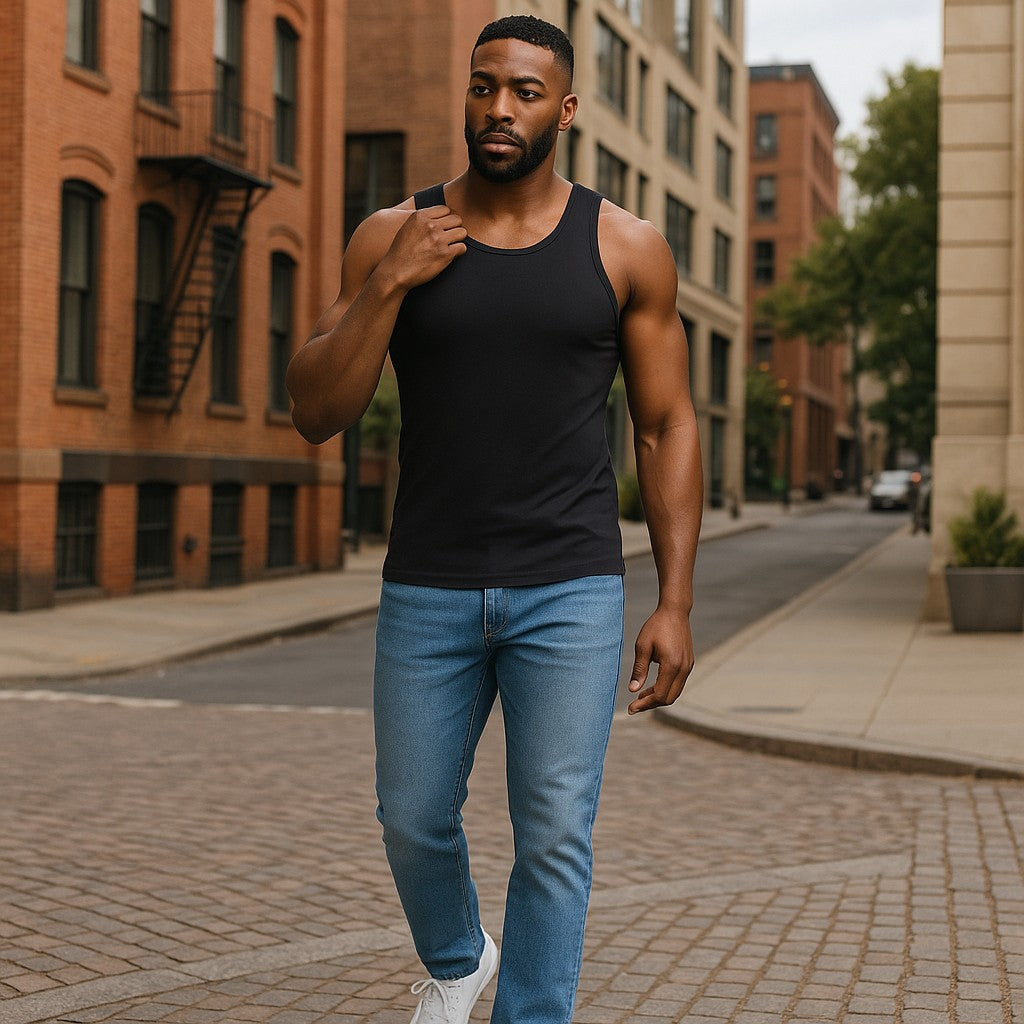 Stay supported and stylish with this sleek men's compression shirt. Designed for performance and comfort, this sleeveless top features a body-hugging fit that enhances muscle definition and promotes better posture. Made from high-stretch, moisture-wicking fabric, it keeps you dry and cool during intense workouts or everyday wear. The classic black design with wide shoulder straps ensures a secure fit, while the smooth finish offers a clean, modern look. Perfect for gym sessions, sports, or as a base layer.