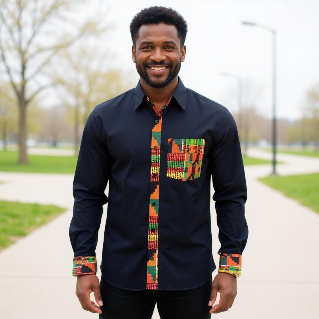 This Men's African Black Kente Print Full Sleeve Shirt is a must-have for any fashion-forward man. Made from 100% cotton, this shirt is not only stylish but also comfortable to wear. The vibrant black Kente print adds a touch of African culture to your wardrobe, making it a unique and eye-catching piece. The full sleeve design provides coverage and warmth, making it suitable for any season. Whether you're dressing up for a special occasion or just want to add some flair to your everyday look, this shirt is the perfect choice. Don't miss out on this versatile and high-quality piece from My African Fashions.