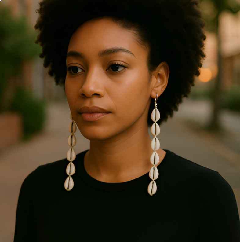 Introducing our Women's African 6 Link Cowrie Shell Earrings, a stunning addition to any jewelry collection. These earrings are handcrafted in Africa, making each pair truly unique and one-of-a-kind. The design features five cowrie shells linked together, creating a beautiful and eye-catching dangle style. The use of cowrie shells in African jewelry has a rich cultural significance, making these earrings not only a fashion statement but also a symbol of tradition and heritage.